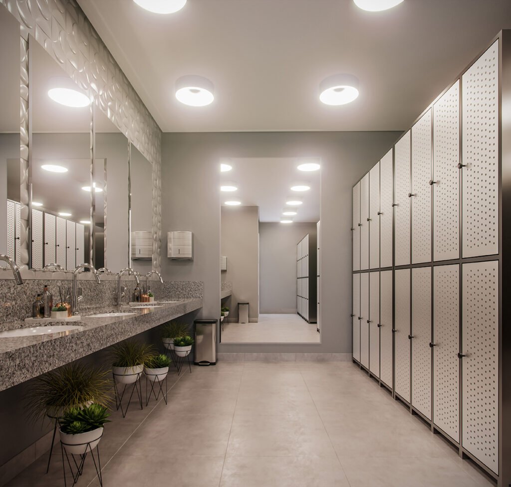 A área de fitness e o espaço mulher com mais de 220m² foi projetado por Fernanda Marques e a Life Fitness.